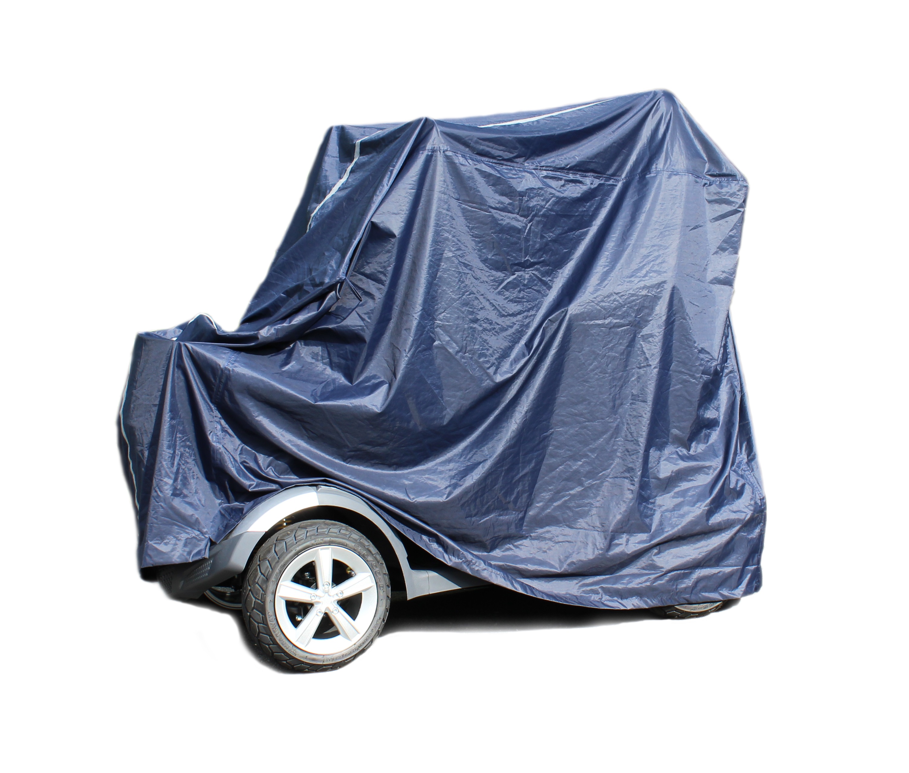 Overtræk til el-scooter i blå vandafvisende polyester. Med vægtbånd, løkker og retningsstribe. Universal størrelse.