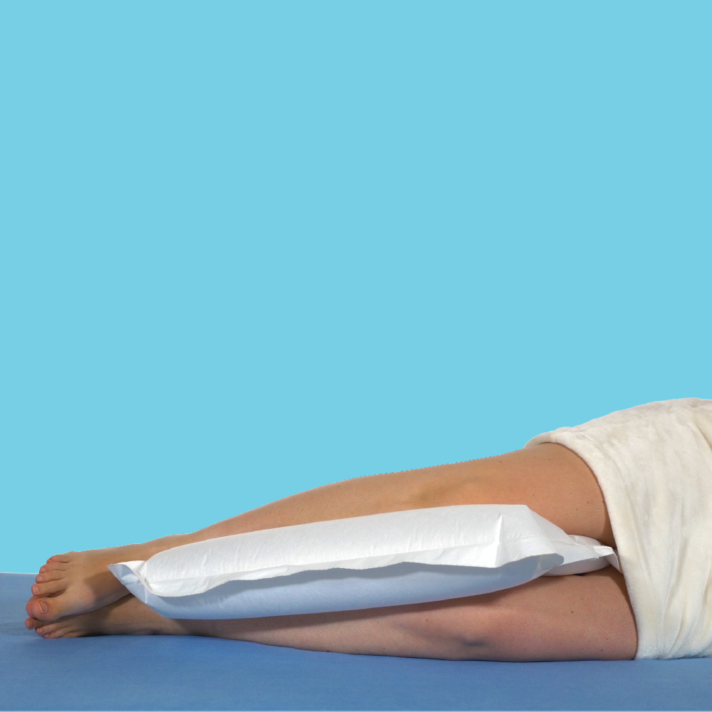 Medium: mellem ben/knæ, bag ryg eller under fødder. Large: støtte og elevation af ben/arme.