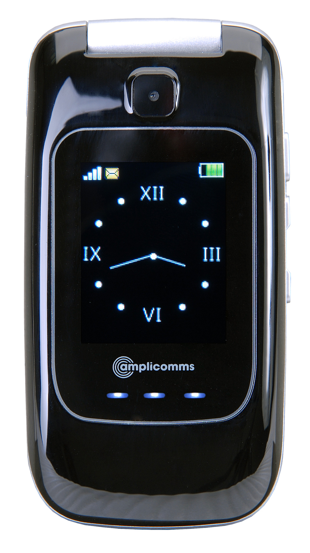 3G mobiltelefon med integreret teleslynge. Frontskærm med ur, batteri, netværksdækning og ikon for indkomne opkald, SMS og MMS beskeder. 35 dB volumen og 90 dB ringetone. Bluetooth, kamera på front og bagside, 3 kvikknapper SOS knap på bagsiden. mange smarte funktioner i menuen. Bordfod til opladning. tager og afbryder opkald via lågklappen.