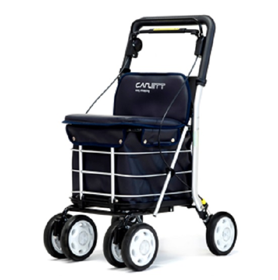 Denne indkøbstrolley er god til det daglige indkøb og hvis man får brug for et hvil, kan den bruges som stol. Hjulene er bløde og er stille selv på ujævnt underlag. Selve trolleyen er lavet af letvægtsaluminium og den er nem at foldes sammen. Håndtaget kan justeres til en passende højde mellem 84 og 91 cm.