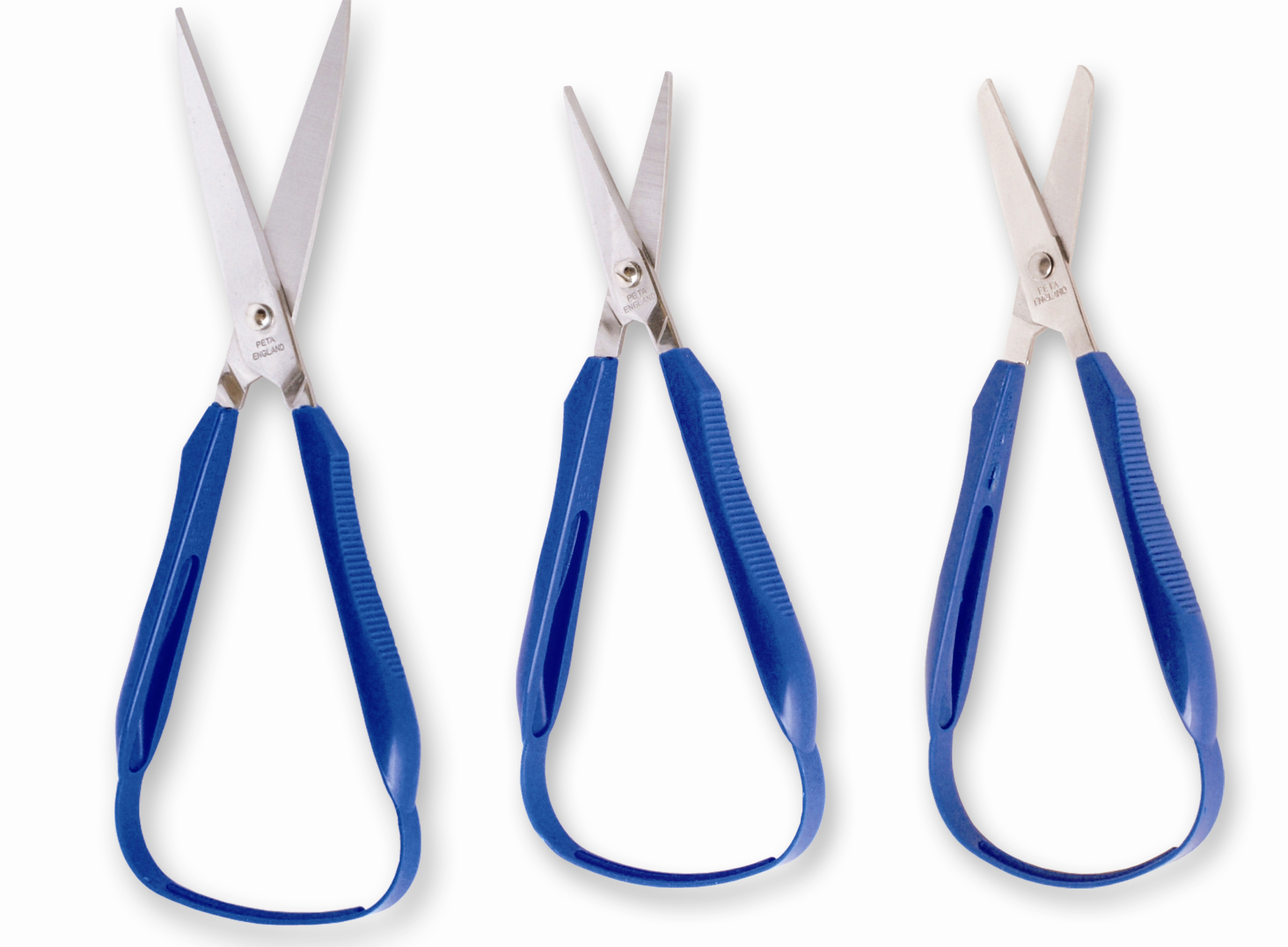 Kan bruges af folk med få kræfter og svage hænder. Bøjlefunktionen gør, at saksene åbner sig efter klip. Der medfølger beskyttelseshætte til saksene. Alm. bøjlesaks 45 mm spids klinge med beskyttelseshætte.
