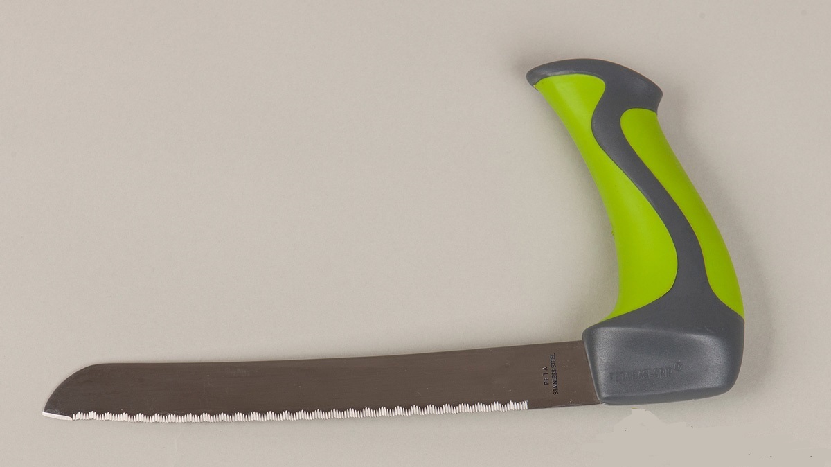 Ergonomiske brødkniv fra Peta har et faconstøbt vinklet håndtag med Non-Slip overflade, som giver et sikkert greb.