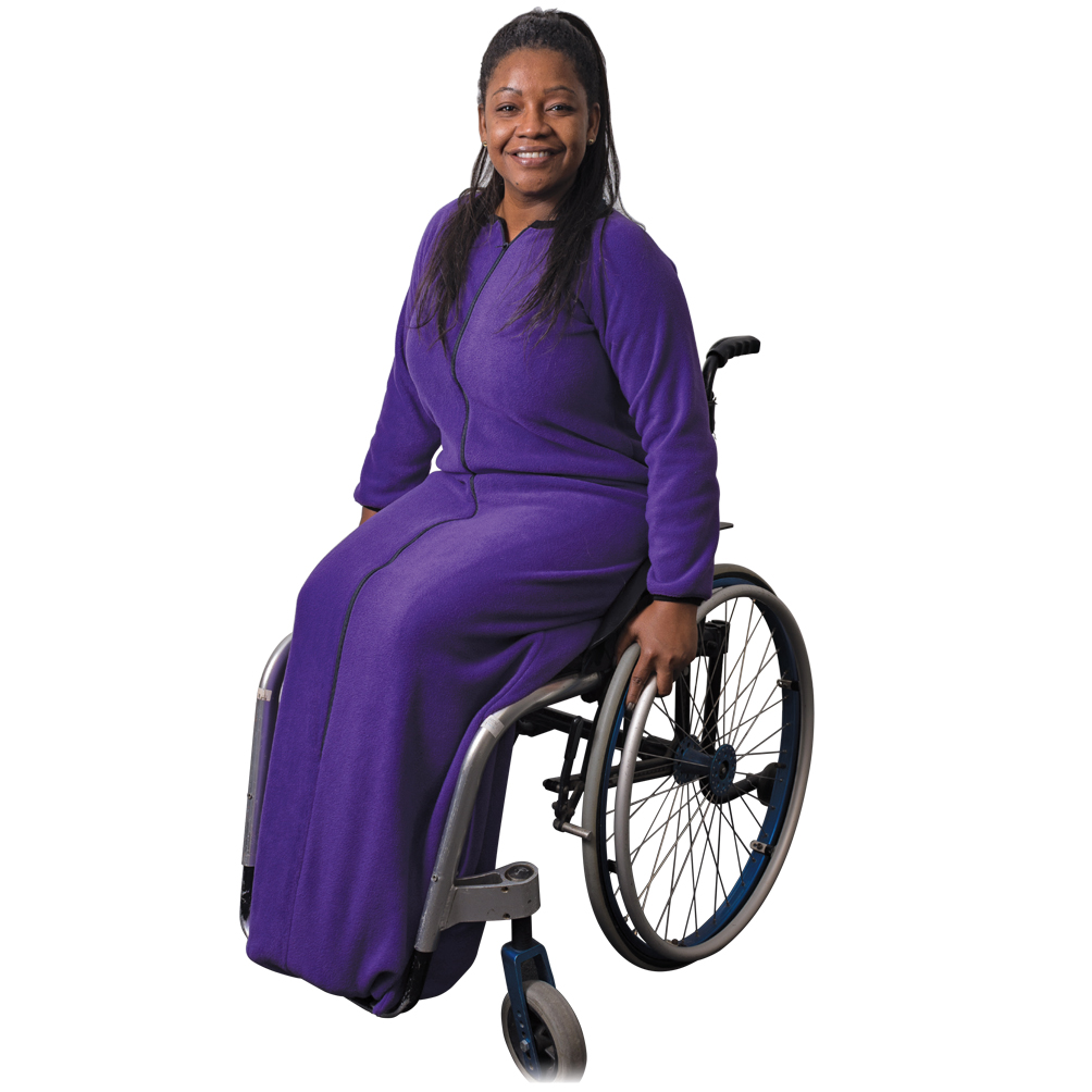 Multifunktionel pose med ærmer og halsåbning. Samlet benrum holder fødderne varme. Ideel som overtøj for kørestolsbrugere og som sovepose for brugere med søvnproblemer. Tilpasses individuelt. Mange farve- og materialevalg.