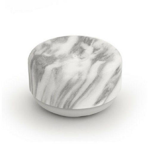 Enhåndsbetjent sæbedispenser i hvid silikone med låg i marmor-look. Med et let tryk på toppen flyder præcis rette mængde sæbe ud på en svamp, børste eller i hånden. Den skridsikre silikone sikrer, at sæbedispenseren står sikkert fast på bordet.