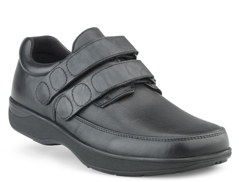Herresko med dobbelt velcrolukning og strækskind over forfoden, som former sig efter foden. Ydersål i PU med medium gængefunktion for bedre gangafvikling. Fra bredeste læstegruppe.
