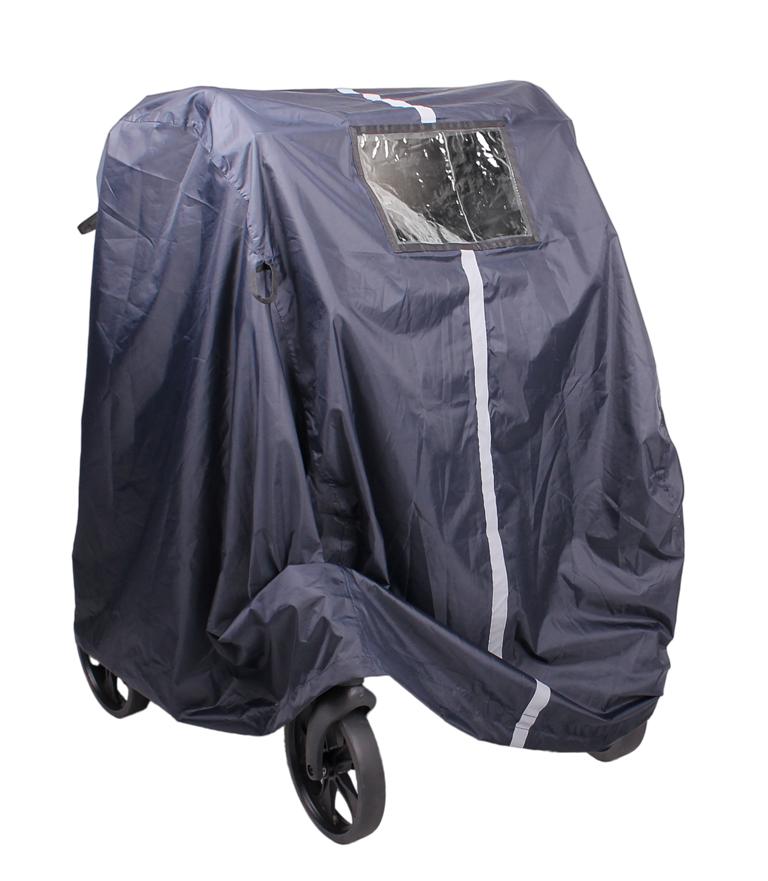 Regngarage i vandtæt polyester til beskyttelse af rollator mod snavs, regn og sne. Har god pasform til de fleste rollatorer. Bælte med vægt og refleksbånd i længde retningen gør det nemt at montere regnslaget korrekt. Hurtig at hænge op i praktisk stroppe efter brug. Gennemsigtig lomme til mærkning af rollatoren.