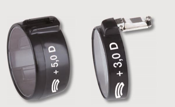 Front cap til Galilean kikkertbrille. Let og håndterbar front cap ved anvendes til mellemafstand (f.eks. tv) og til kort afstand (f.eks. læsning). Kan kombineres med en grundlæggende front cap til højere forstørrelse og variabel arbejdsafstand. Add-on front caps vippes let op, når det ikke er i brug.