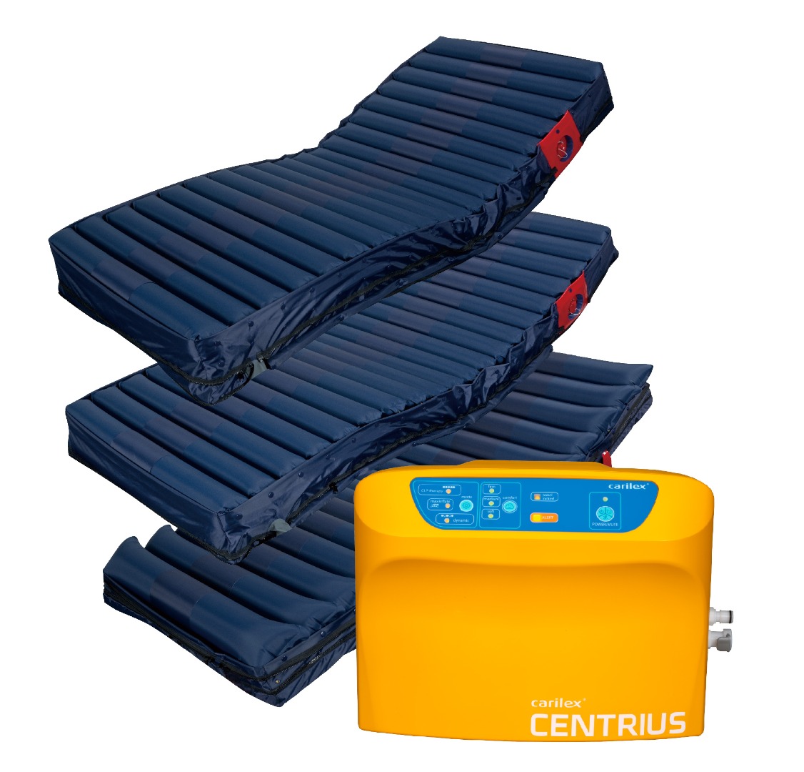 20 cm høj madras med skum base, så patienten ikke ligge direkte på sengen ved trykfald. Strækbar betræk i begge retninger. Betrækket er mærket med fodende. CPR ventil. Plejefunktion. Auto vægt. Akustisk og visuel alarm ved strømsvigt og lavt tryk. Memory recall. Alarm mute. Meget stille pumpe.