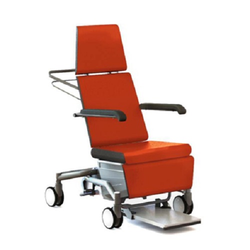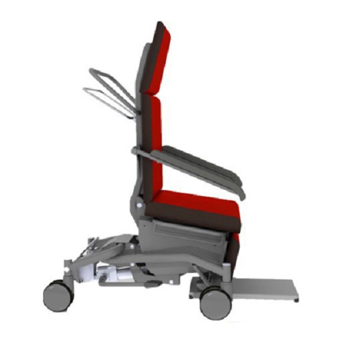 Manuel mobiliseringsstol fra liggende til stående stilling. Sikkerhedsfodstøtte sænkes automatisk. Drejelige armlæn og aftagelig hovedsektion. Trykaflastende polstring. Let at rengøre.