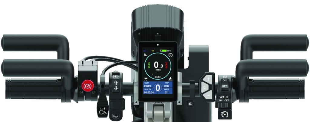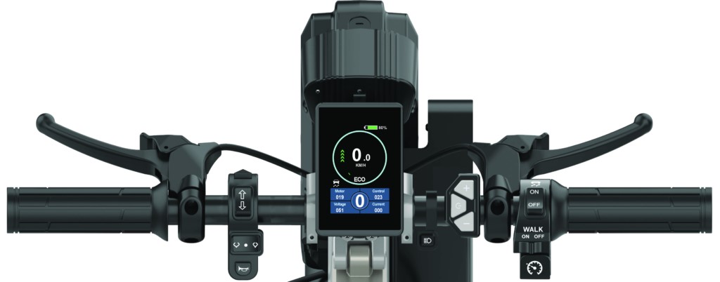 Tetra greb, 14 tommer hjul, 900W motor, Intelligent Bremse System, Elektronisk og mekanisk (skrive)bremse, LCD farvedisplay, Adaptiv fartpilot, Lys, Traction control, Støtteben med hjul, Parkeringsbremse, 15kg. eks. batteri, skilles ad til 12kg. for transport