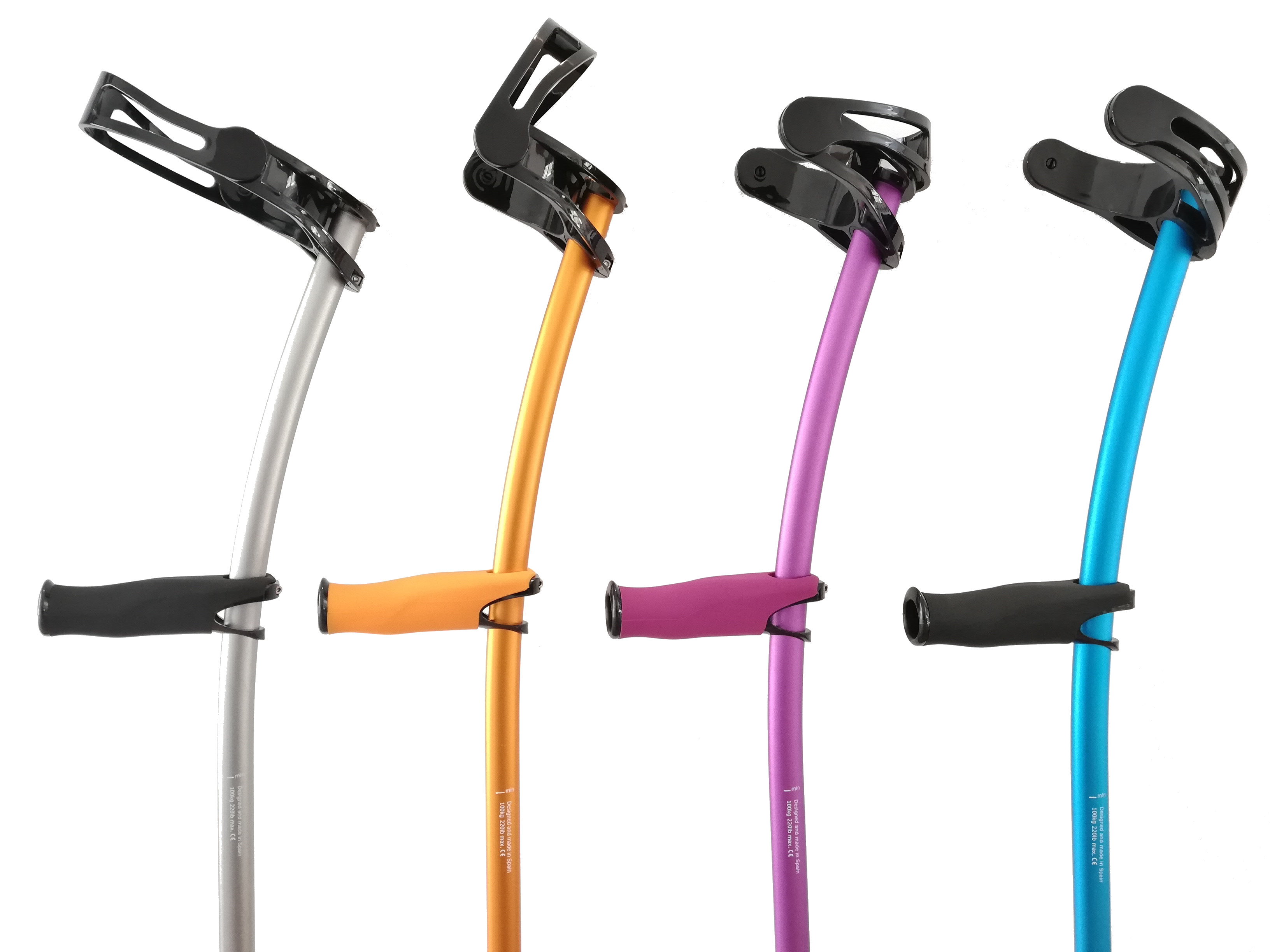Let krykke i aluminum. Vejer 400 gram. Designet på håndtaget er optimeret til at reducere risiko for carpal tunnel syndrom. Armringe kan fås i forskellige størrelser. Højde tilpasses til den enkelte bruger. Beskriv højde ved bestilling.
