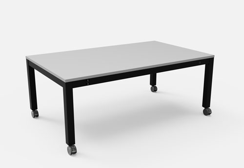 4single er et multifunktionsbord til siddende såvel som stående arbejde. Velegnet til køkkener, alrum m.v. Længde 165x100 cm eller 200x100. Højdejusteres elektrisk fra 57,5-87,5 cm eller 67,5-97,5 cm cm. Komplet bord med bordplade i lysegrå laminat (RAL 7004) med sortkant.