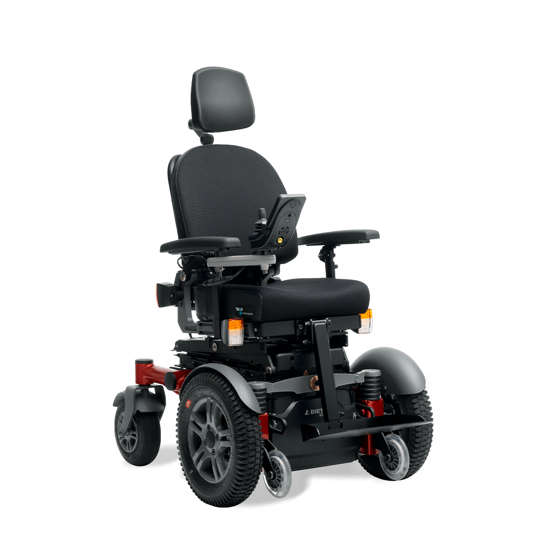 El-kørestol til børn med justerbare indstillinger for køremønstre og komfort. Egnet til indendørs og udendørs brug. Byggehøjde fra 39 cm med mulighed for negativt kip. Giver nem adgang til bil og er let at manøvrere. Elektrisk sædehøjde, el-ryg, el-kip og el-benstøtter tilbydes som tilvalg.