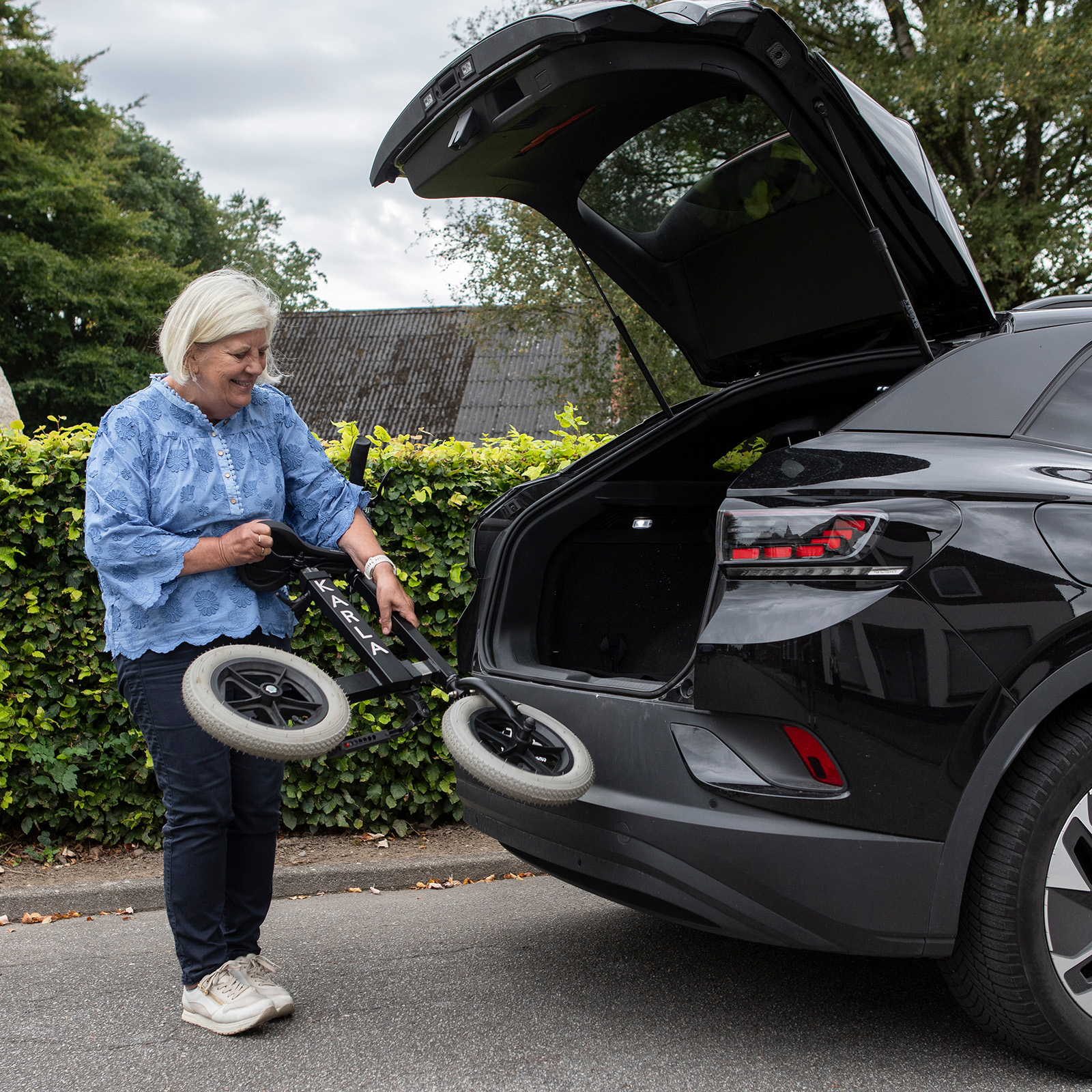Karla er en let og fleksibel gåcykel, der giver tryghed og komfort på længere ture. Den er både til børn og voksne. Det justerbare teleskopstel og værktøjsfri indstilling af styr og sadel sikrer god ergonomi. Karla kan skubbes sammen til transport og aflaster led og ryg. Maks. brugervægt 90 kg.